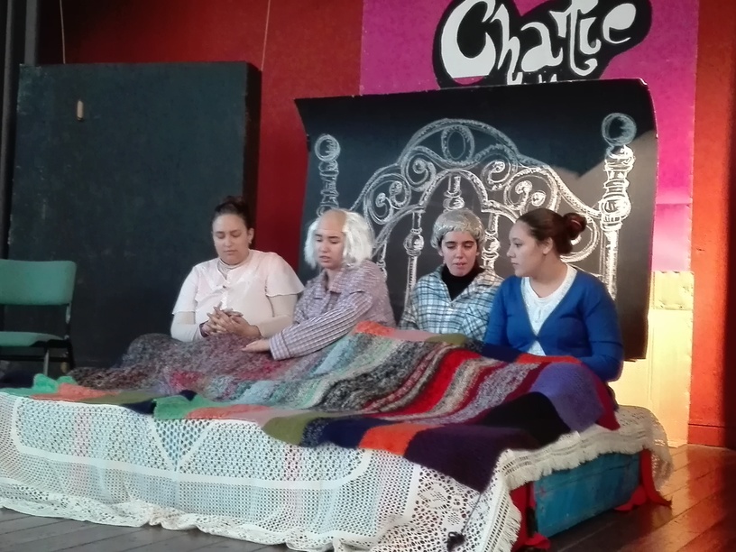 - El Departamento de Tecnología ha montado los elementos del decorado para nuestro salón de actos y para la representación teatral.